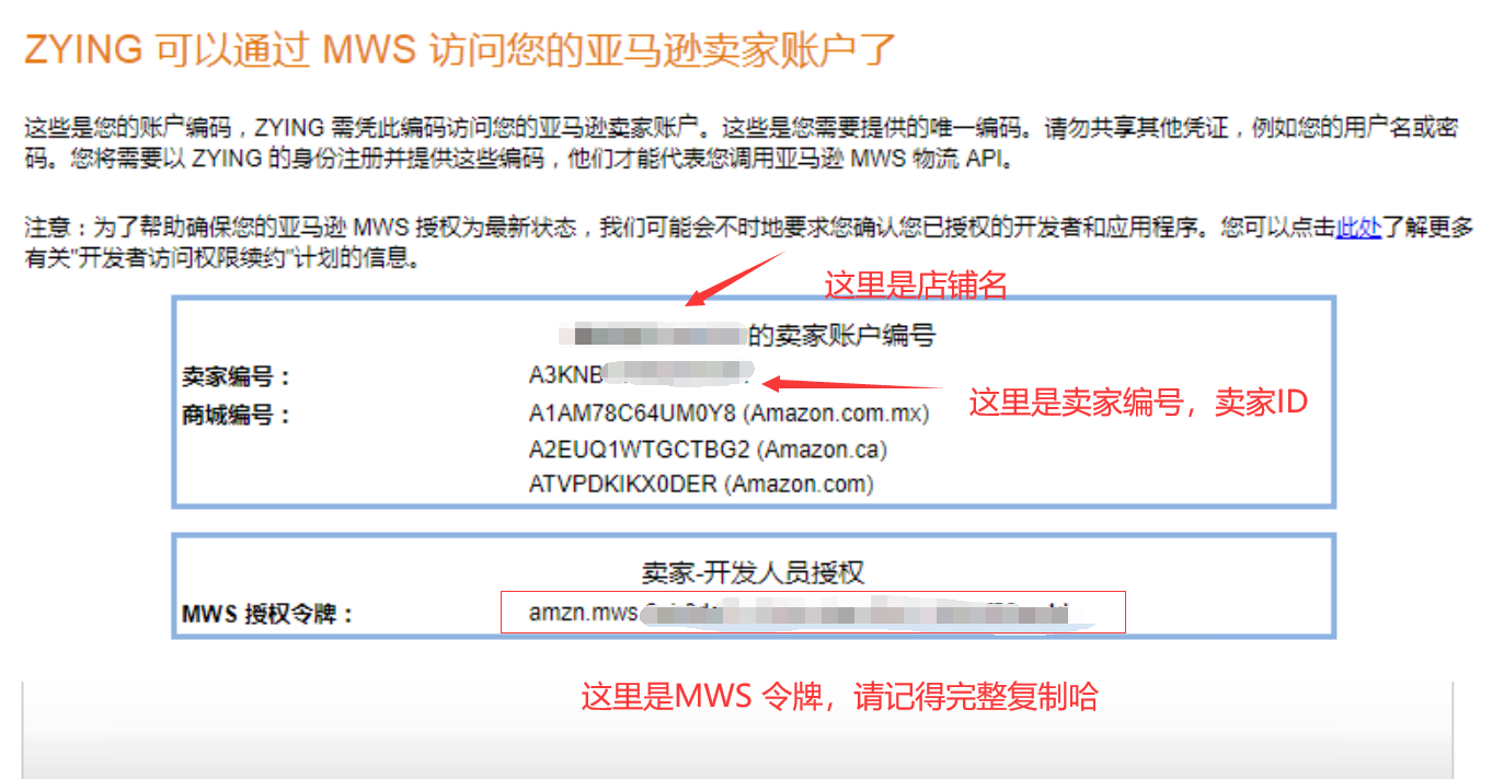 把MWS 授權(quán)令牌 完整的復(fù)制下來,填寫到智贏的 授權(quán)令牌那
