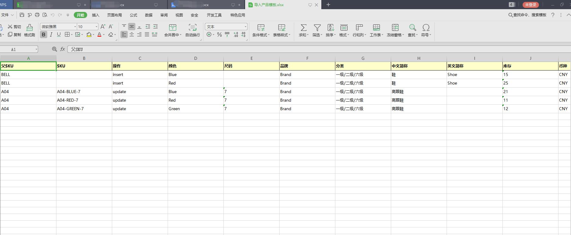 2、按模板要求填寫產(chǎn)品內(nèi)容。